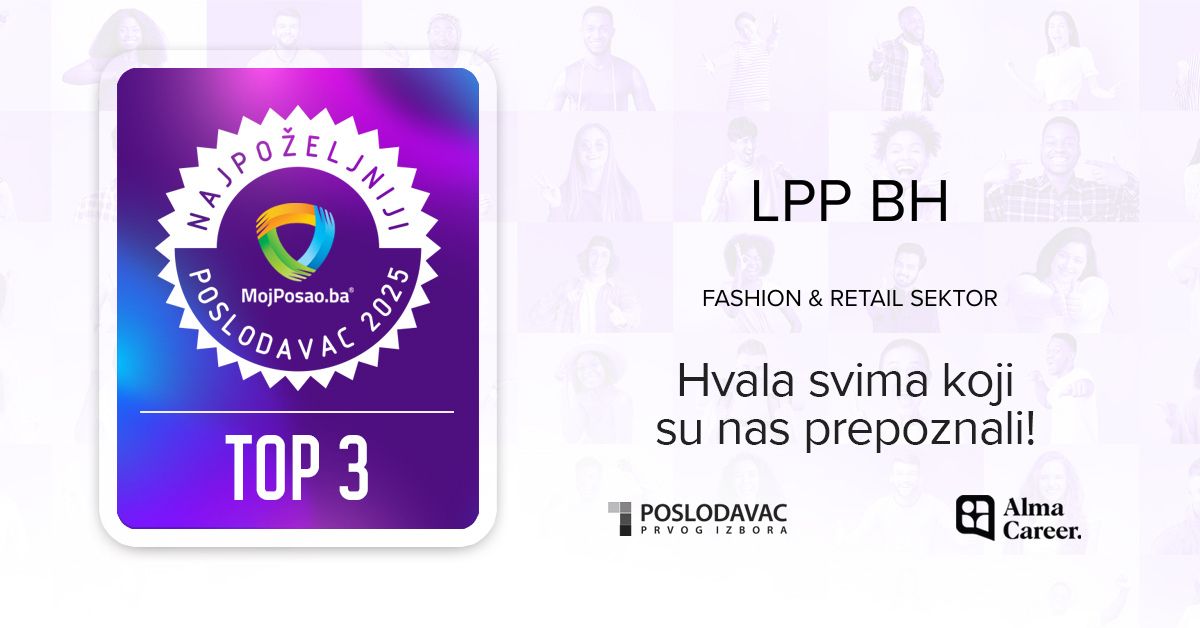 LPP BH je proglašen najpoželjnijim poslodavcem u Fashion&Retail sektoru za 2025. godinu, prema rezultatima istraživanja "Najpoželjniji poslodavac", koje sprovodi kompanija Alma Career.